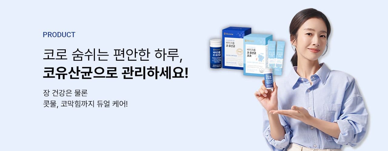 ![[정기배송] 바이크롬 코 유산균 캡슐 1개월분](/_next/image?url=https%3A%2F%2Fd1vb419ubgm46b.cloudfront.net%2FPRD%2F202604%2F72b5585a71d58e61164ccf128acbb82a.png&w=3840&q=75)